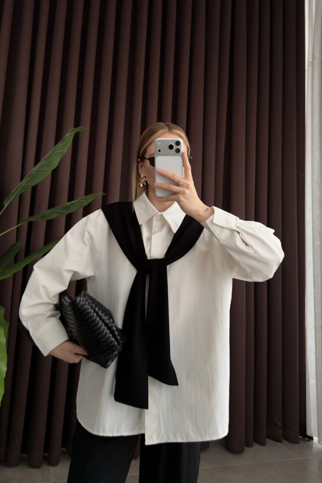 Önden Bağlamalı Tasarım Gömlek Siyah