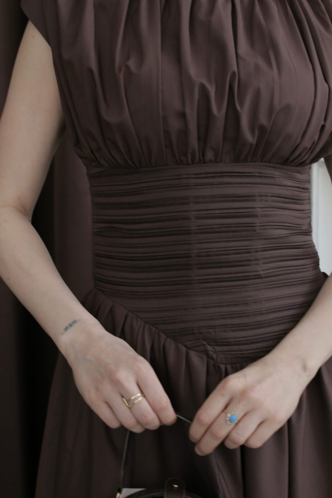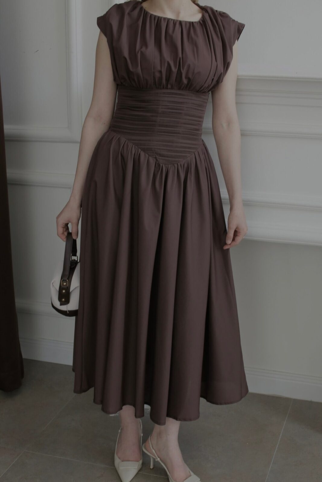 Premium Drapeli Tasarım Elbise Kahve