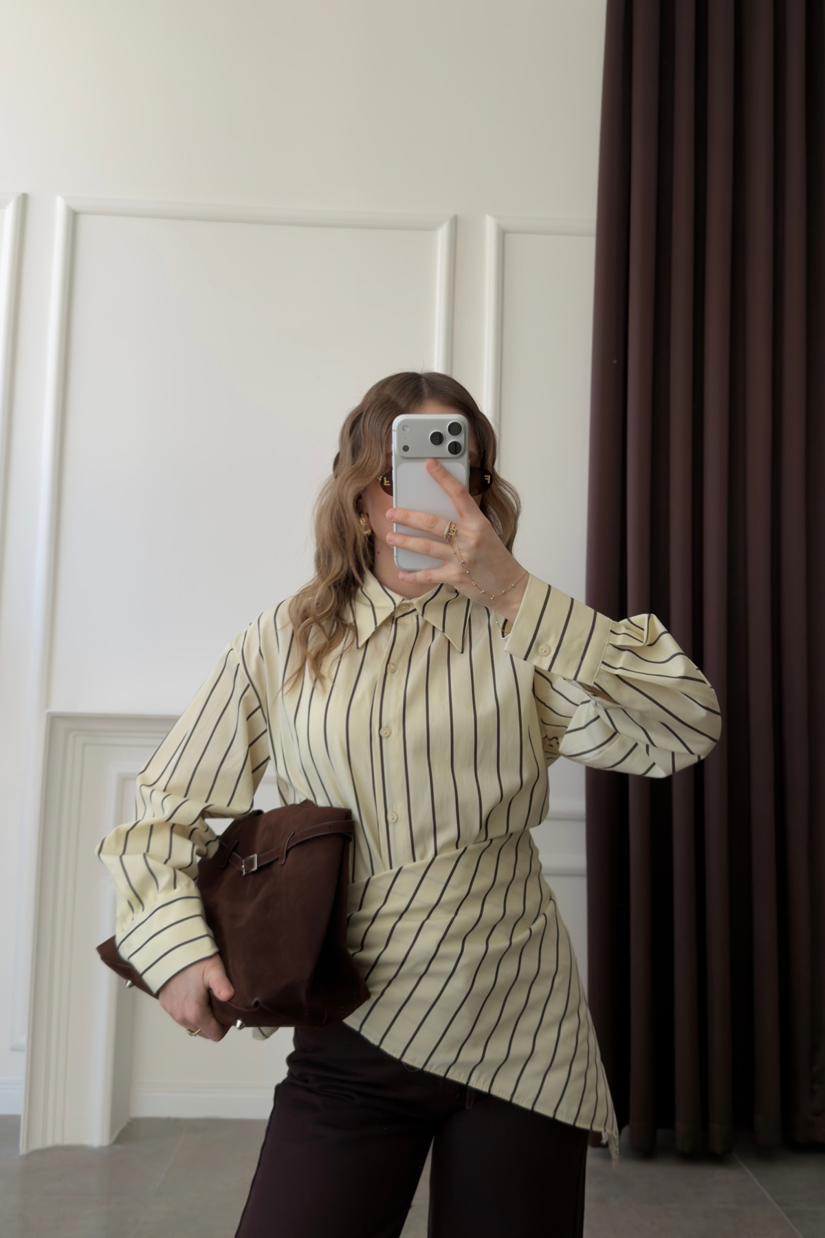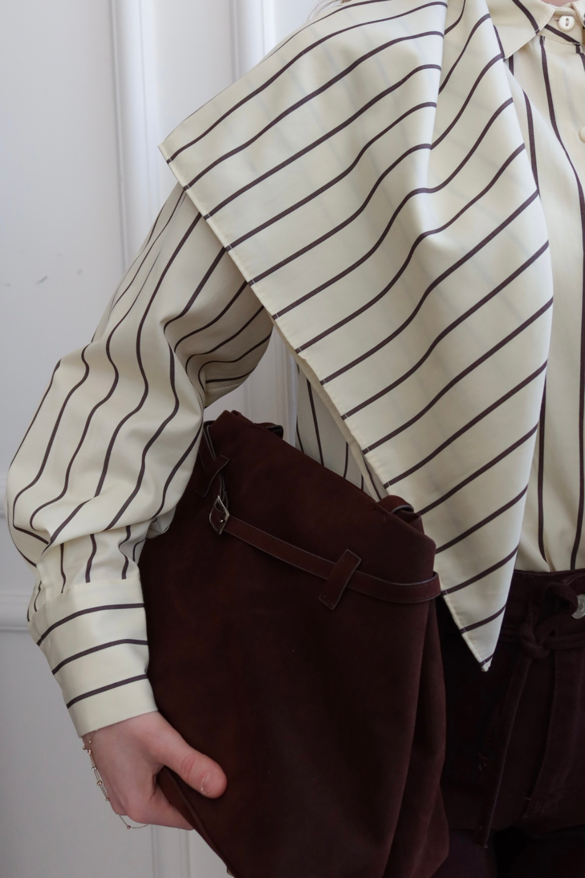 Tasarım Fular Detaylı Çizgili Gömlek Butter Yellow