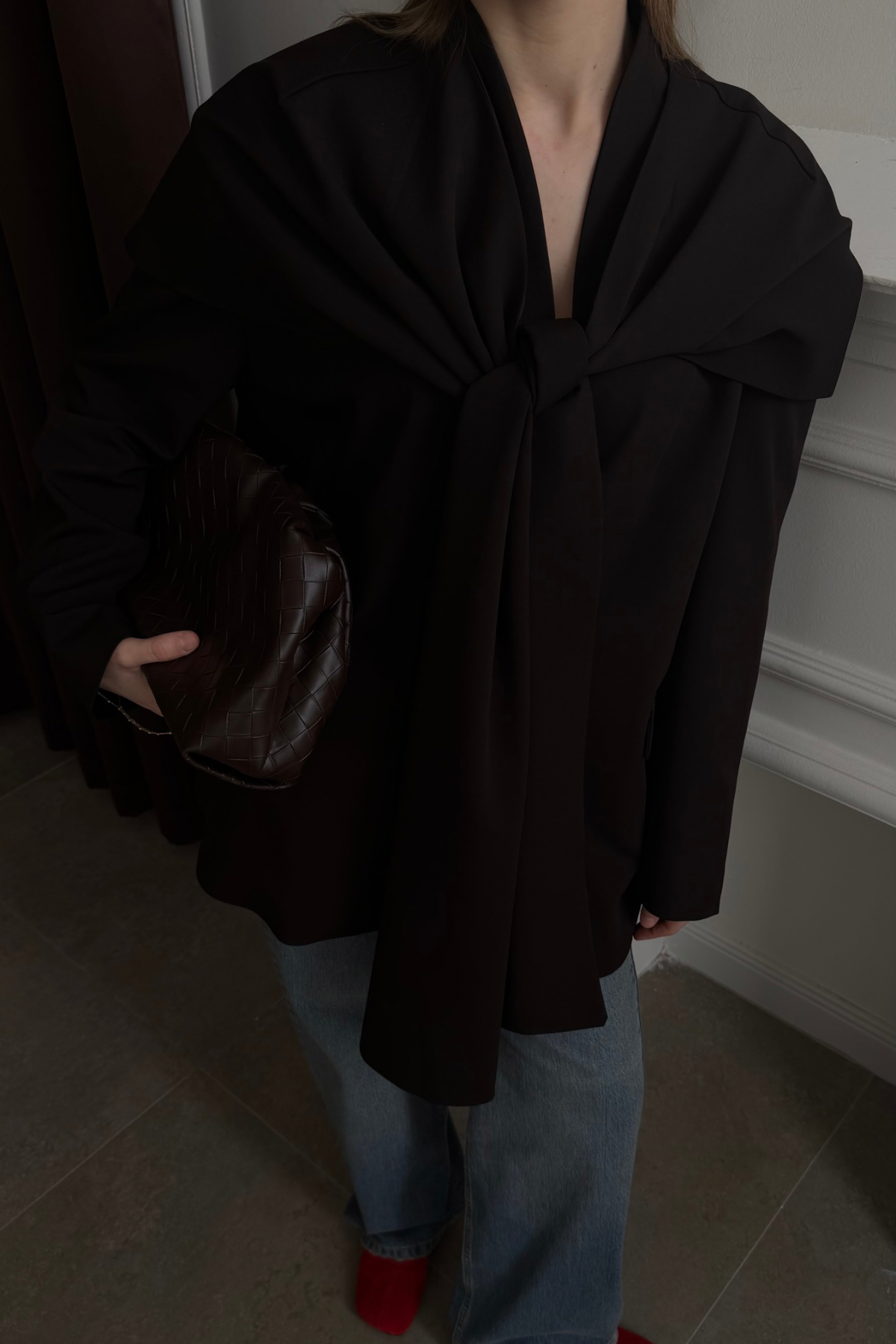 ZRA Model Şal Bağlamalı Detaylı Blazer Ceket Acı Kahve